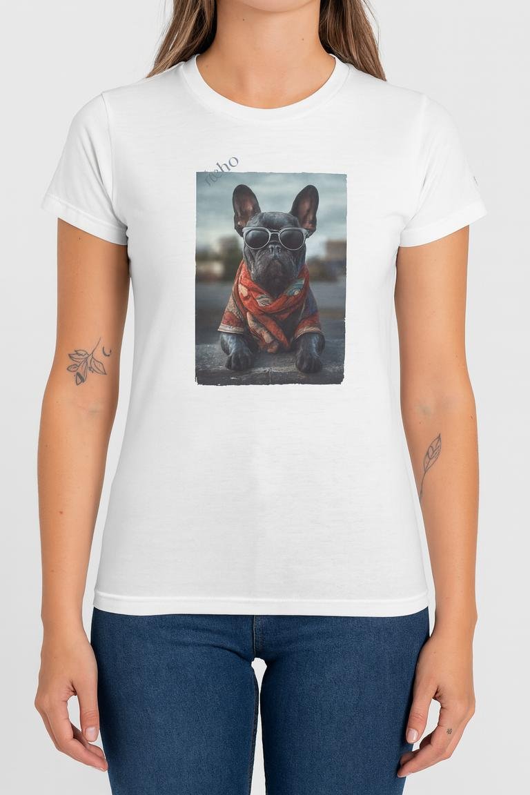 Premium streetwear heavy cotton woman tee featuring a bold Punky Frenchie illustration in white, black, and red. Unisex XS–XL, soft feel, built for city nights and loud days.