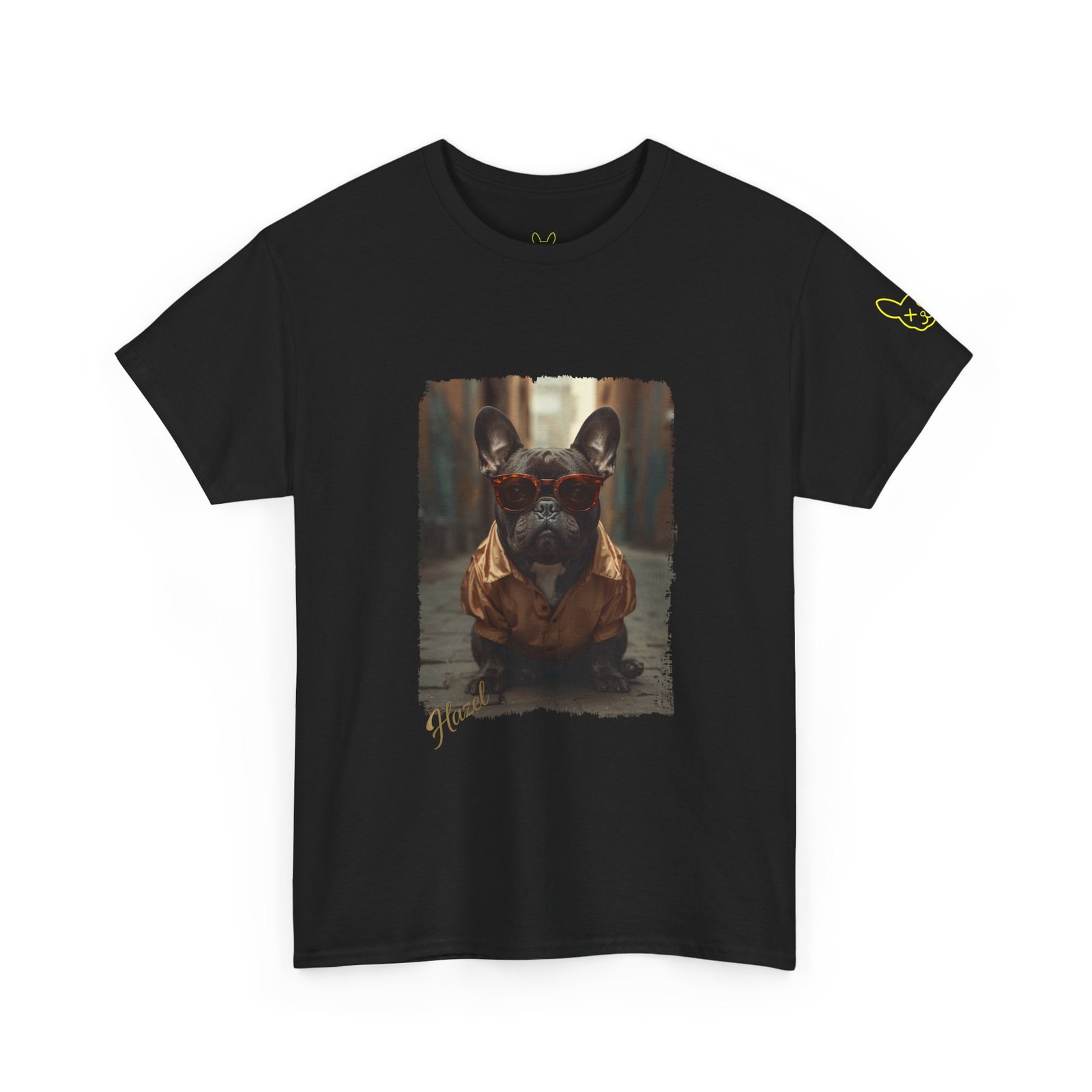 Wearing this french bulldog graphic tee lets you channel Hazel’s calm confidence and subtle sophistication. It’s perfect for dog lovers who appreciate understated elegance woven into streetwear. Whether you’re hitting the art scene or just strolling through the city, this tee adds a touch of artist’s grace to your urban style. Embrace the quiet power of a Frenchie that knows how to turn heads without making a fuss.