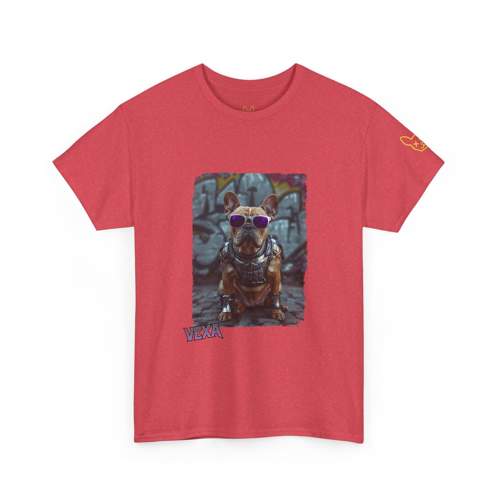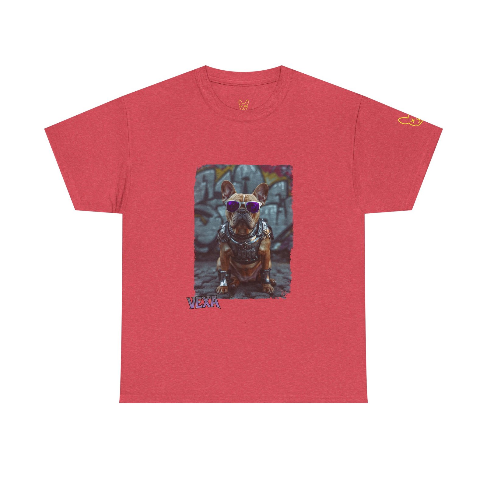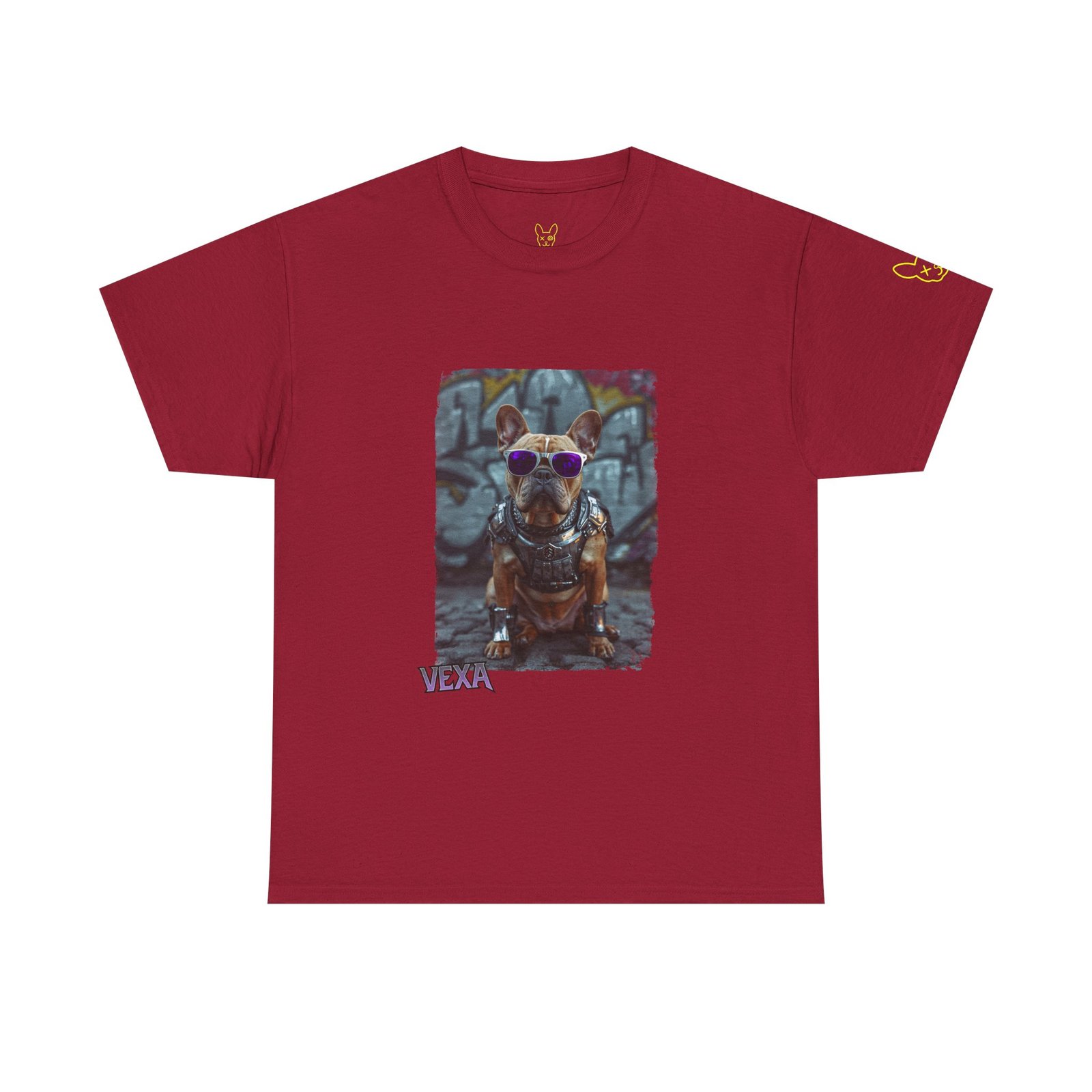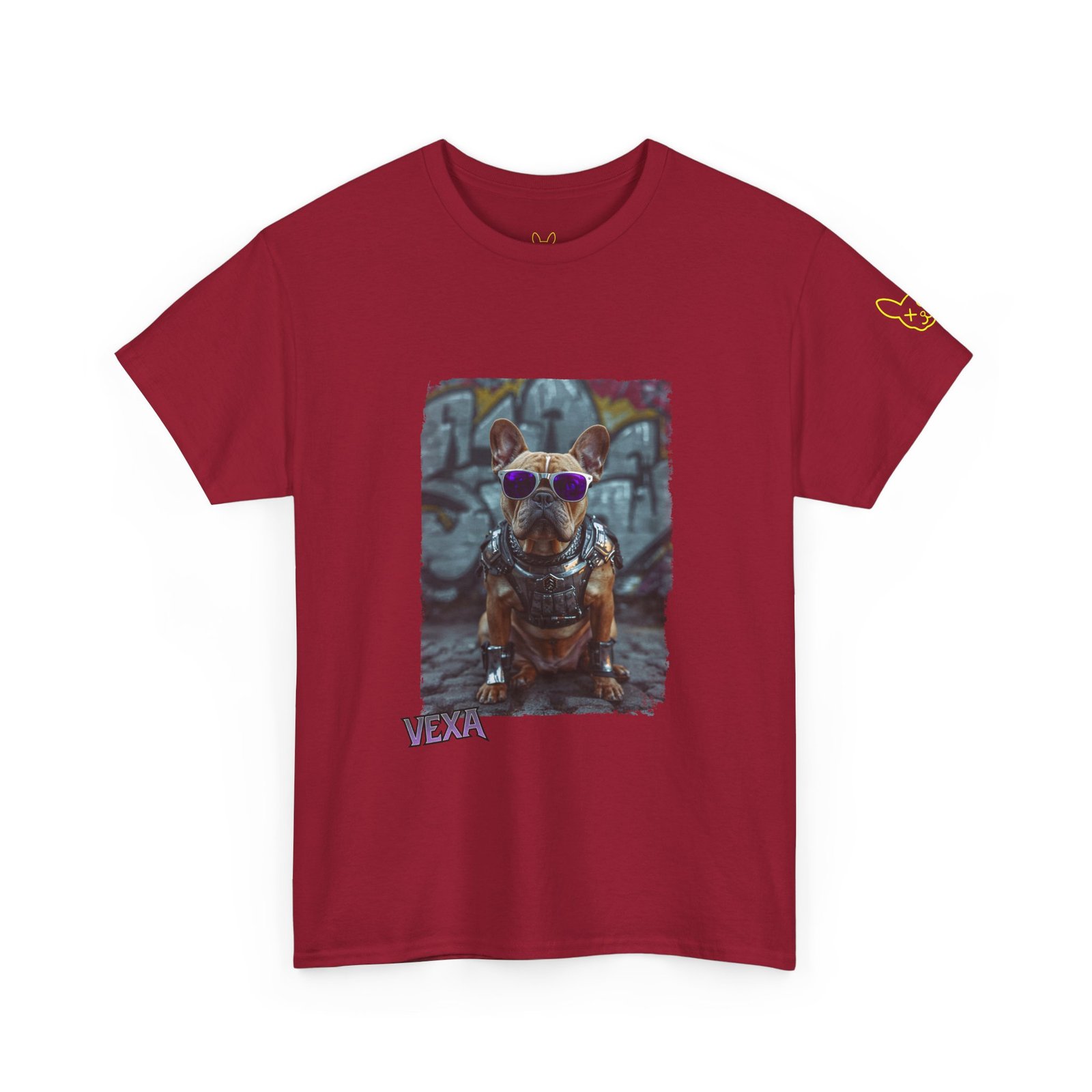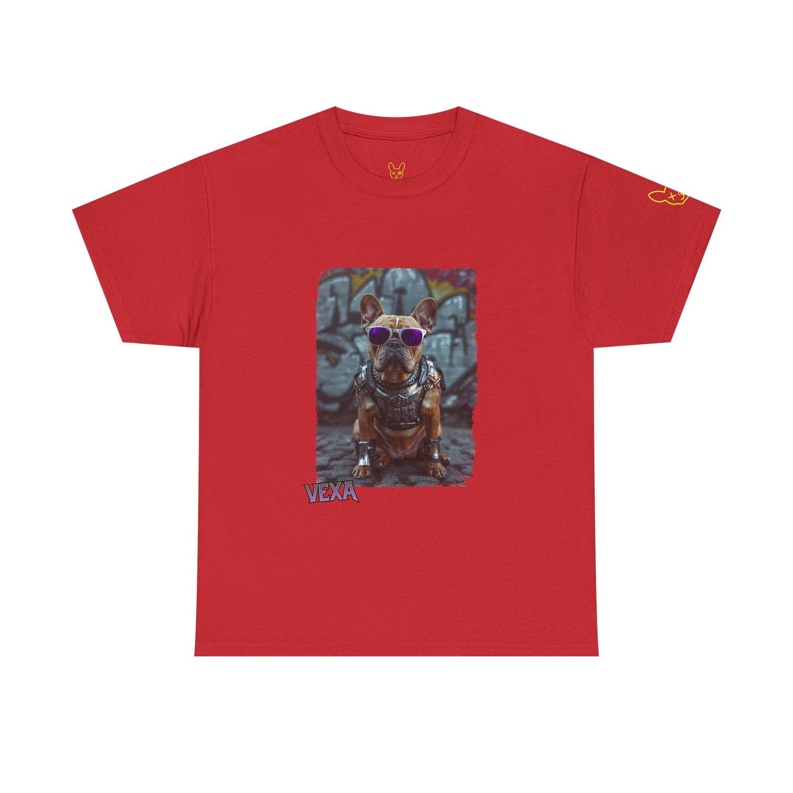 Premium streetwear heavy cotton tee featuring a bold Punky Frenchie illustration in white, black, and red. Unisex XS–XL, soft feel, built for city nights and loud days.
